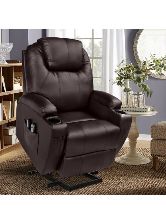 Homall Heated Swivel Rocking Recliner Chair Massage Pu Leather 360 Swivel Rocker Recliner Living Room Chair Home Theater Seating Heated Pu Leather Brown Walmart Com